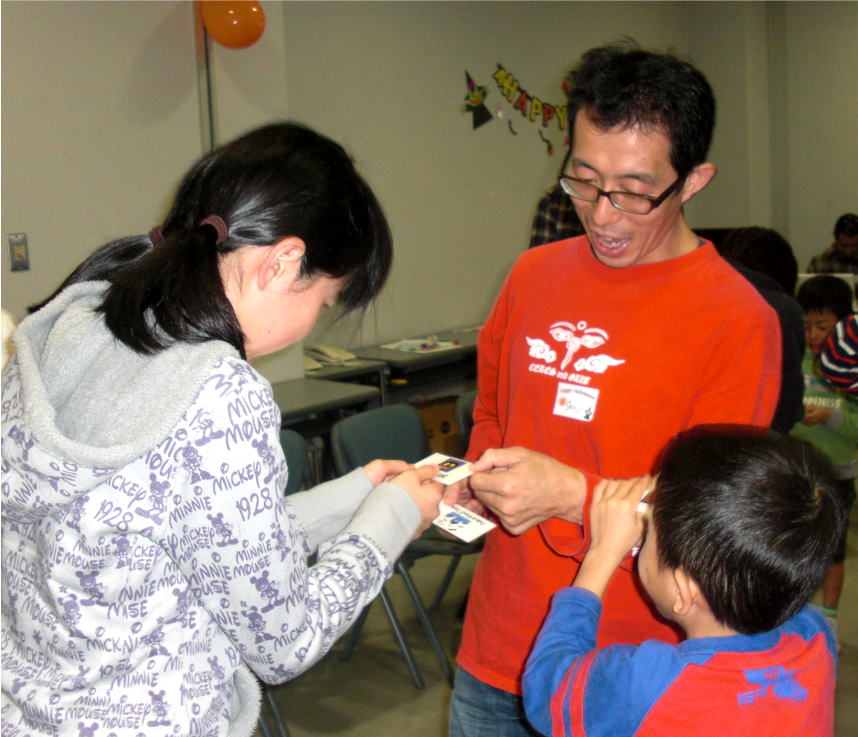 | 同じカードを持ったお友達をみつけたかな?? みんな上手に英語で自分の名前で自己紹介ができたよ♪ 新しいお友達もできたよ♪ |